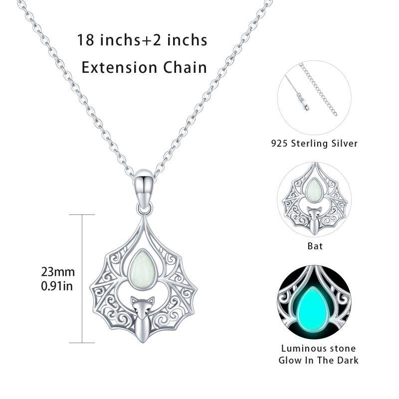 Bat Necklace 925 Sterling Silver Vampire Bat Glowing in The Dark Pendant Halloween Jewelry Party Gift