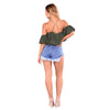 Blue High-waisted Feet Fringed Denim Shorts Women