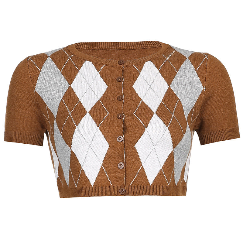 Breasted Woolen Short-Sleeved T-Shirt Women's Crop Top