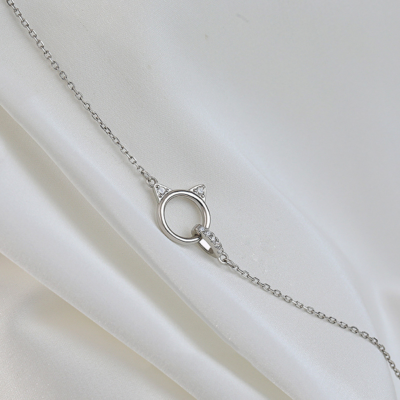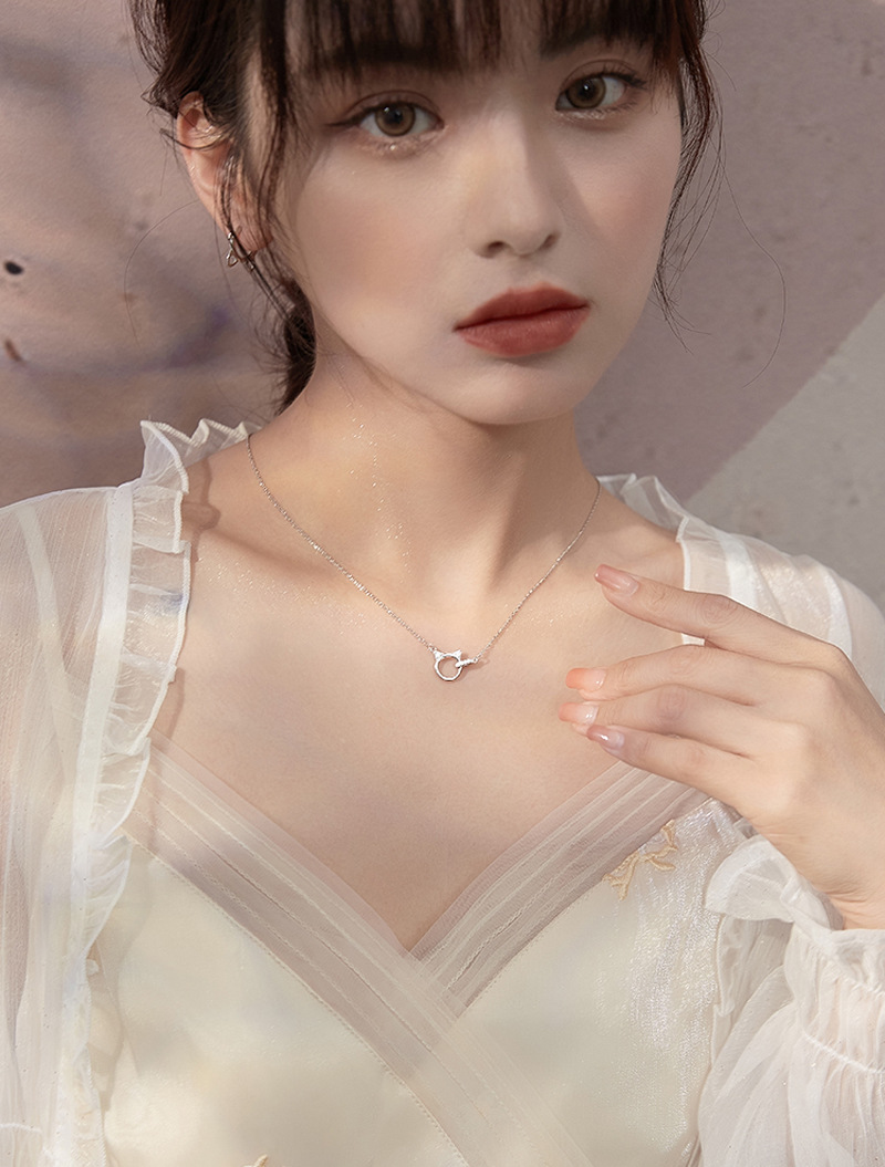 Cute Kitten Light Luxury Minority Design Diamond Ring Buckle Necklace INS