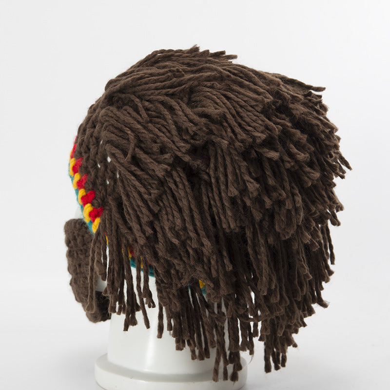 Halloween party spoof knit wool hats handmade beard men and women wig hats