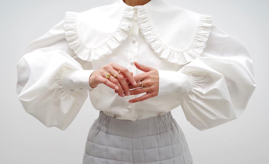 Palace Wind Doll Collar White Cotton Shirt Female Autumn And Winter Europe And America Wooden Ear Edge Long-sleeved Shirt
