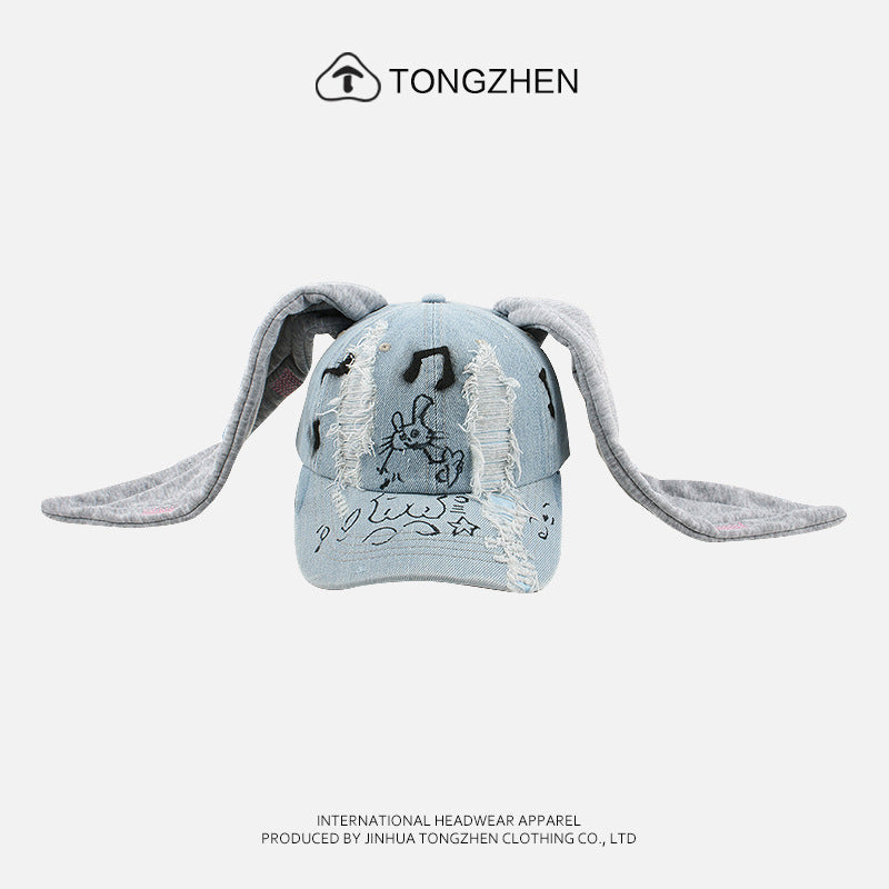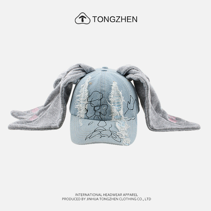 Rabbit Ears Denim With Hole Baseball Hat Washed