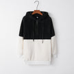 Women's Casual Round Neck Rope Hooded Stitching Sweater Jacket