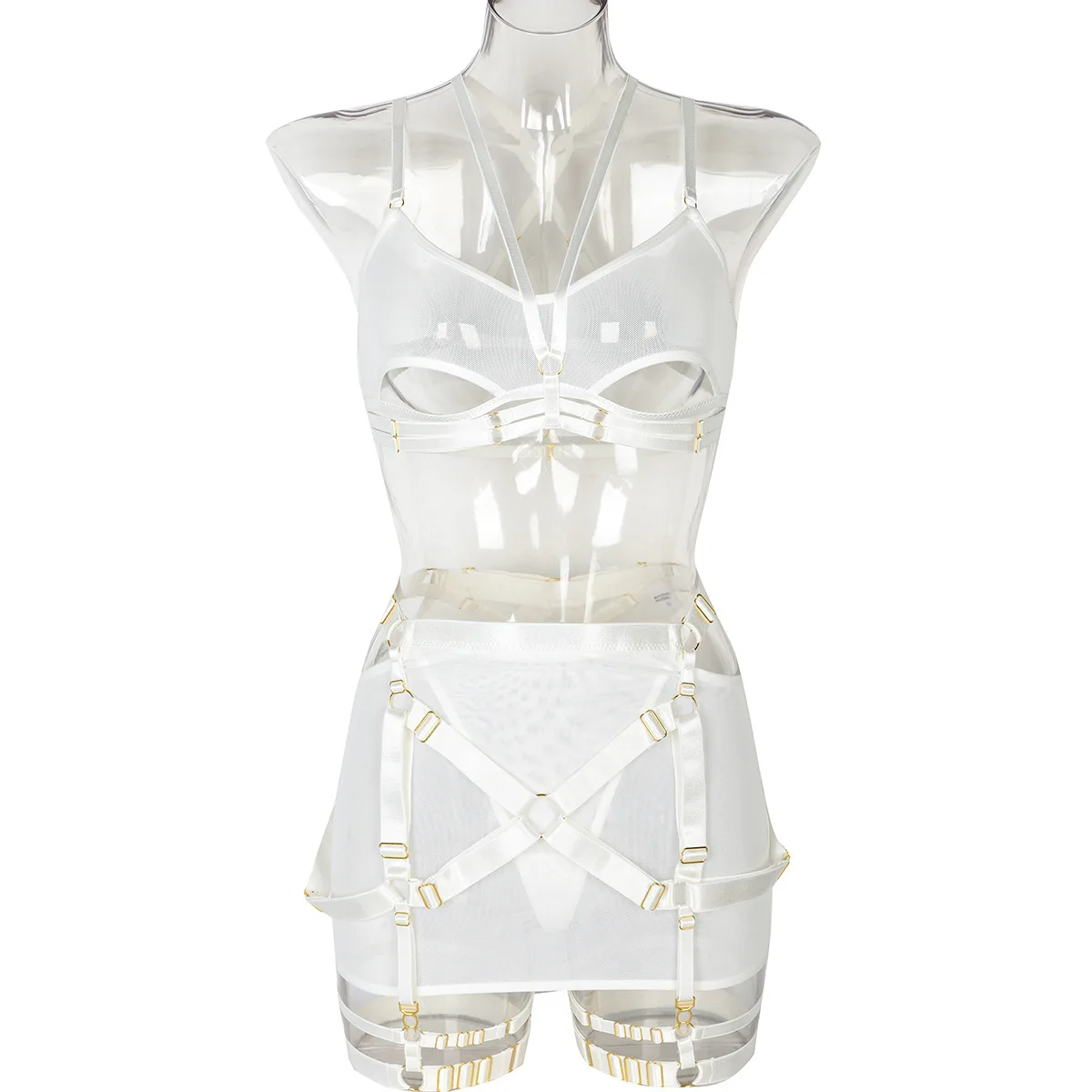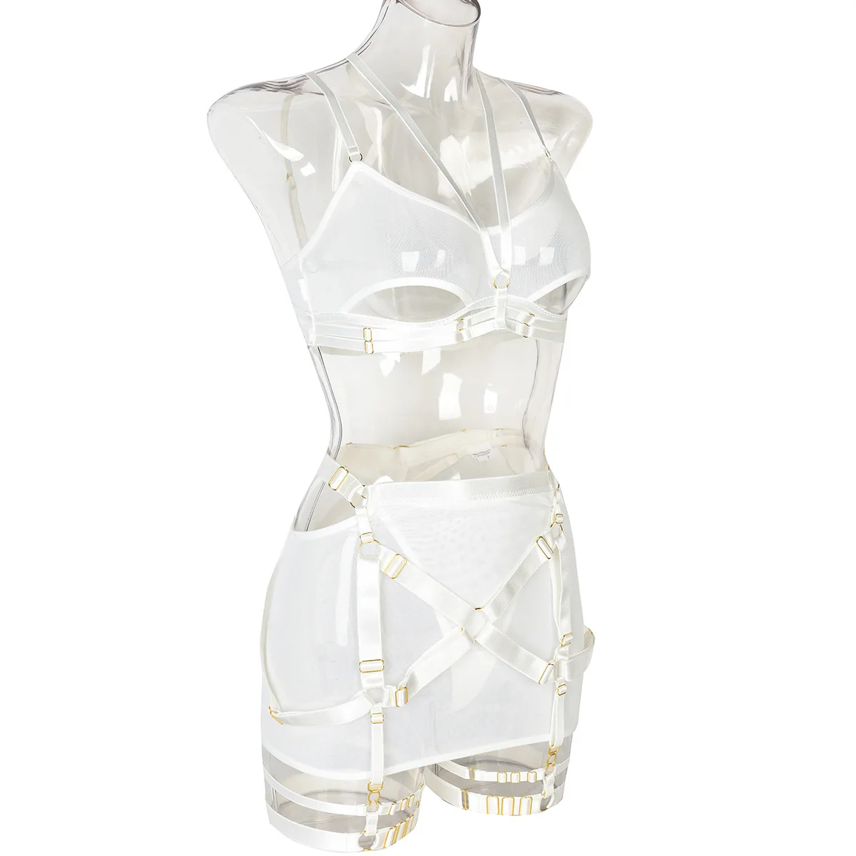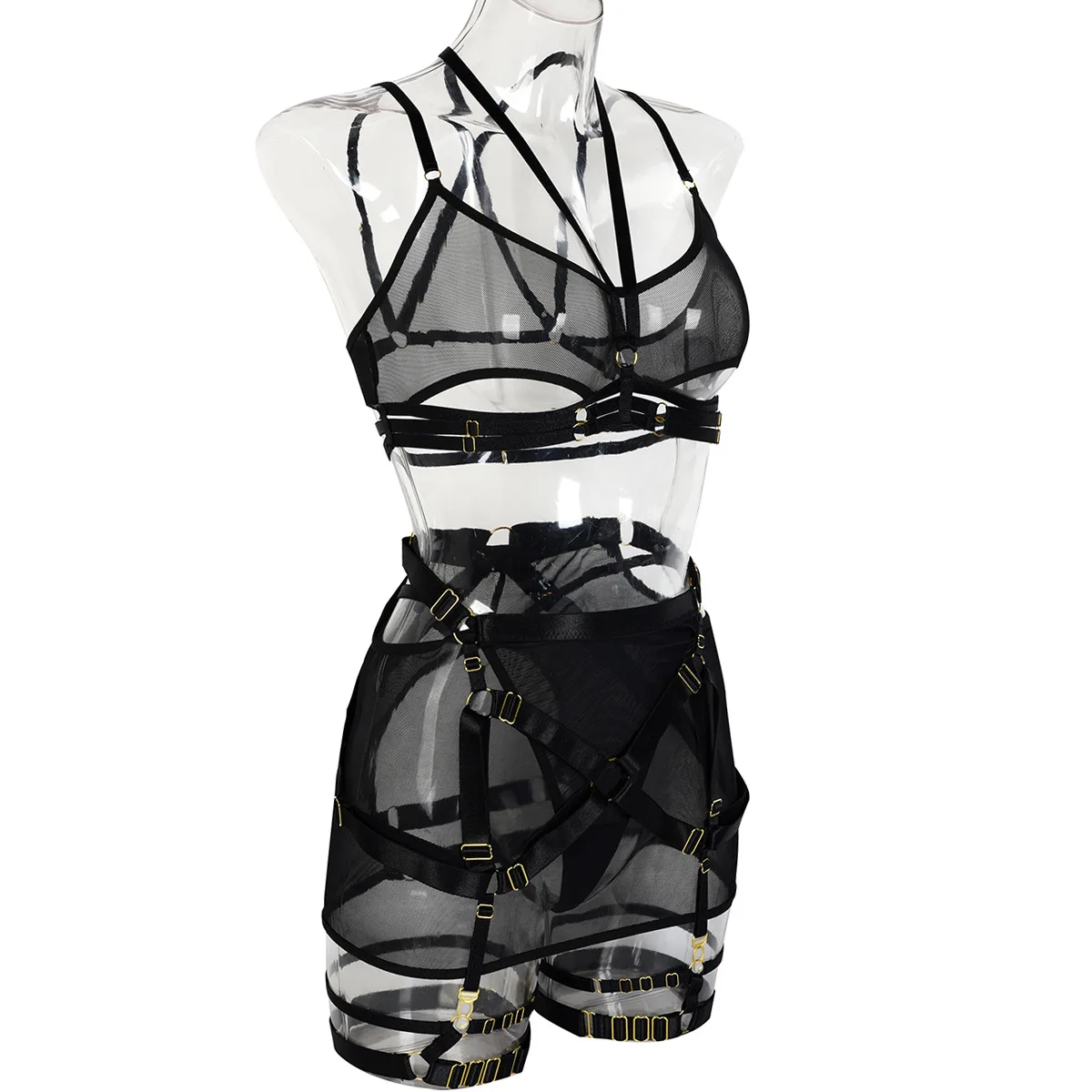 Women's Mesh Perspective Fun Underwear Three Piece Set
