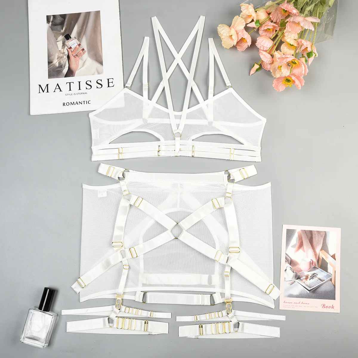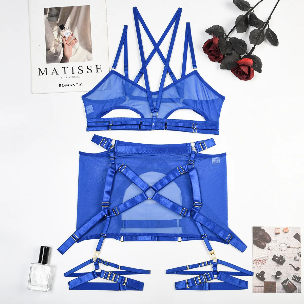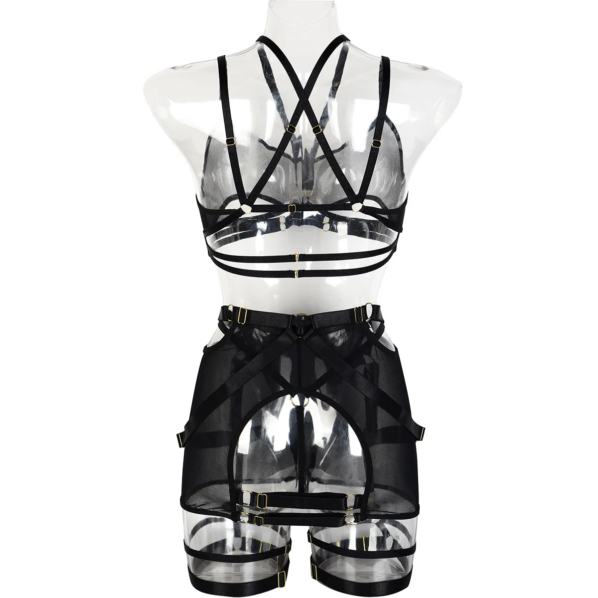Women's Mesh Perspective Fun Underwear Three Piece Set