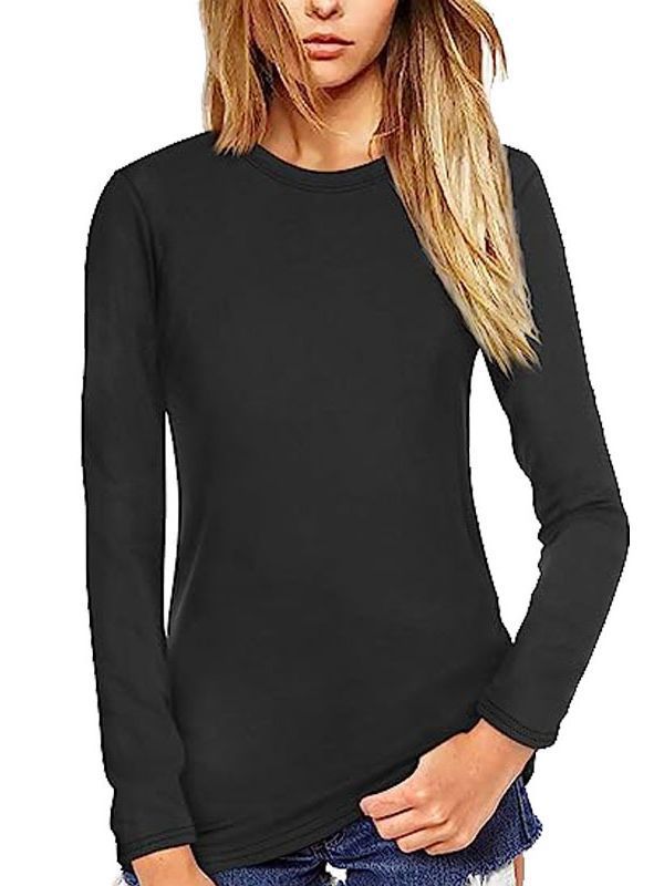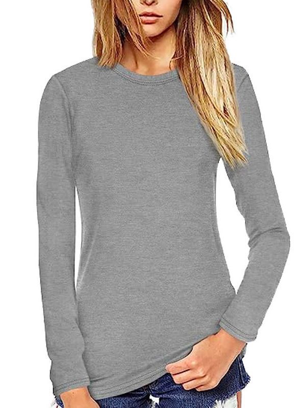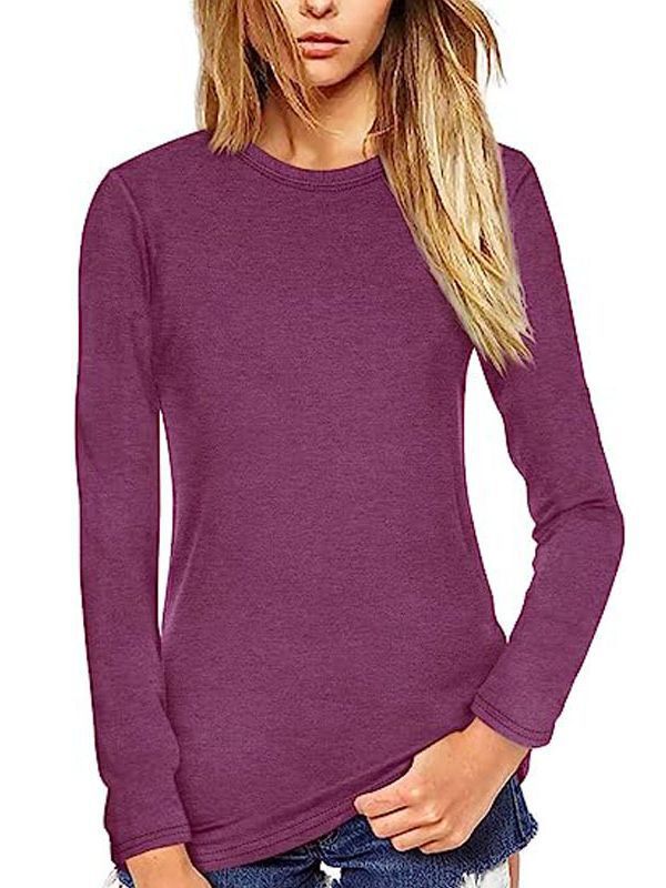Women's Solid Color Stretch Slim Fit Pullover Round Neck T-shirt