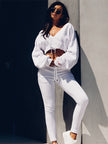 Women's Sporty V-Neck Letter Embroidered Hoodie Top