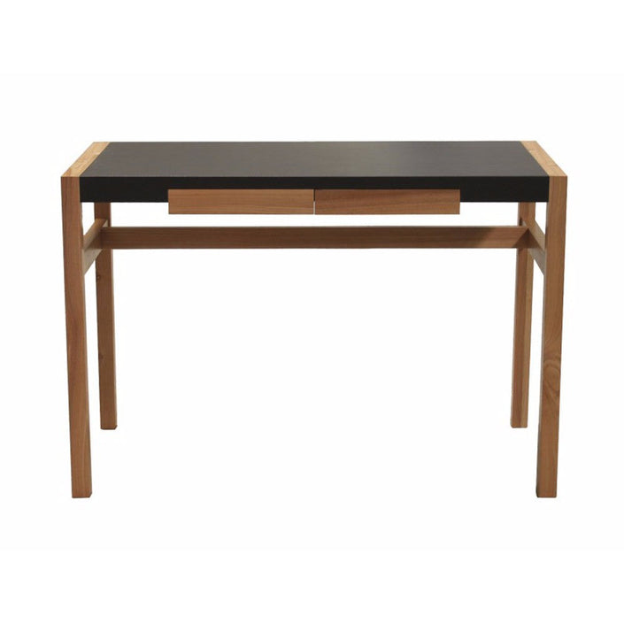 Rectangular Black Veneer Desk with 2 Small Drawers