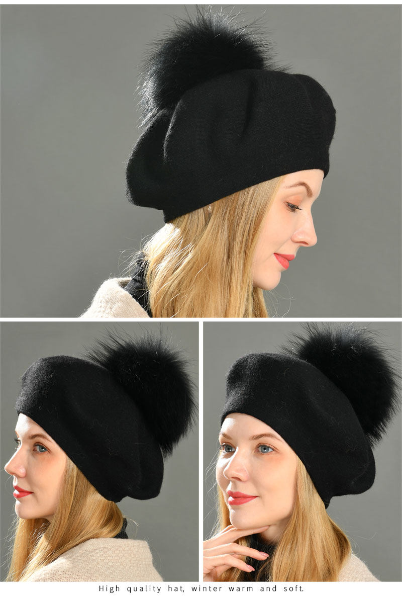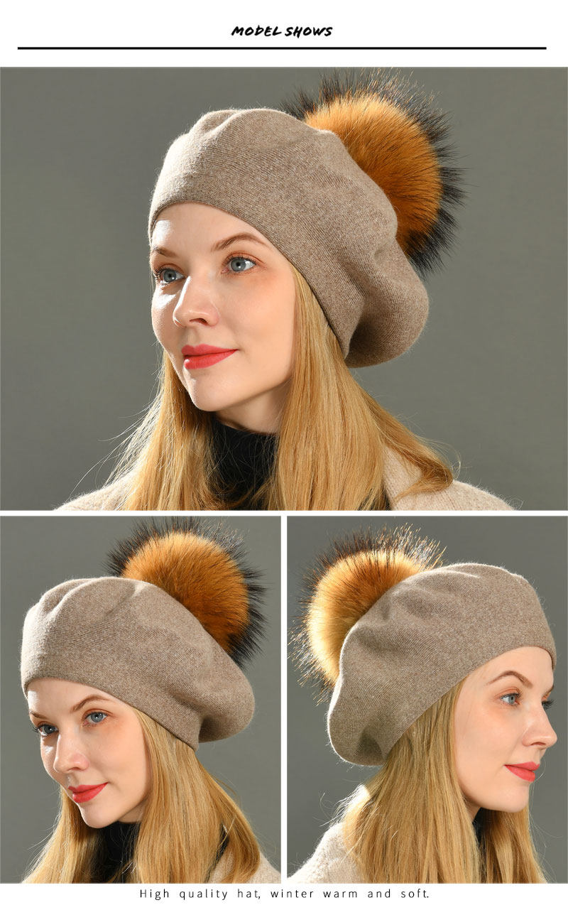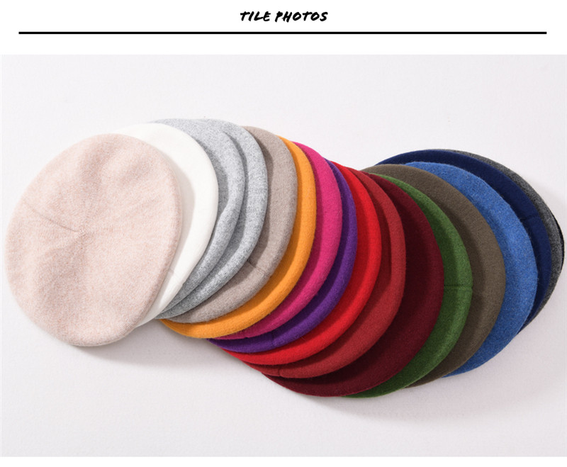 Autumn Winter Berets Hat Women Casual Knitted Wool Beret Wit