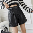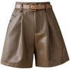 New High Waist Wide Leg A-line PU Outer Wear With Belt Leather Shorts For Women