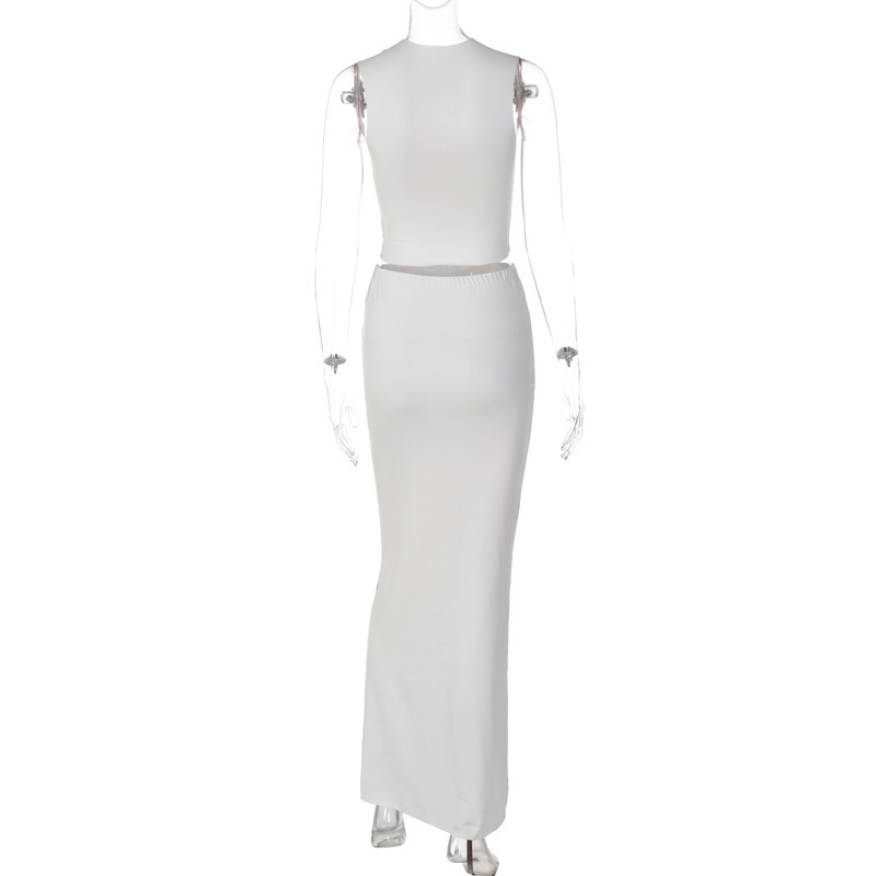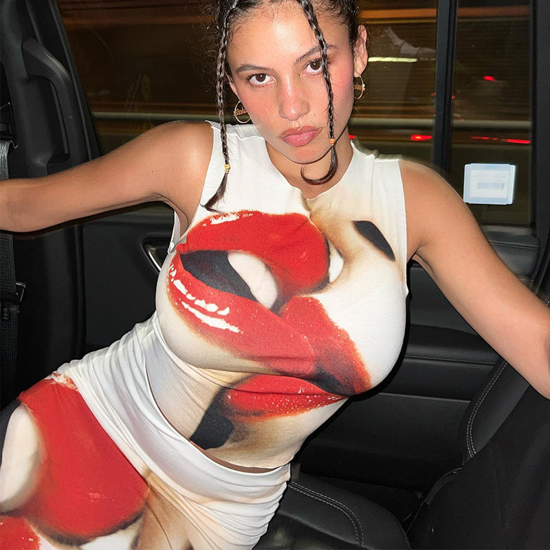 Printed Personality Street Style Chest Wrap Slim Long Skirt Suit