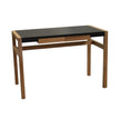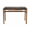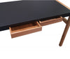 Rico deluxe desk, leather veneer top, solid wood frame. Solid birch wood frame. Natural wood color with black vinyl lether table top. Two drawers, each size:11"W x 13.5"D x 1.5"H. Elegant design. Product Dimension: 42"W x 22"D x 28"H, Weight: 44 lbs.