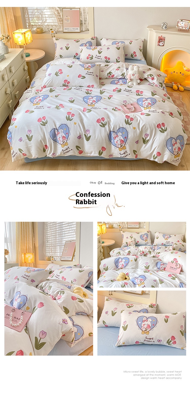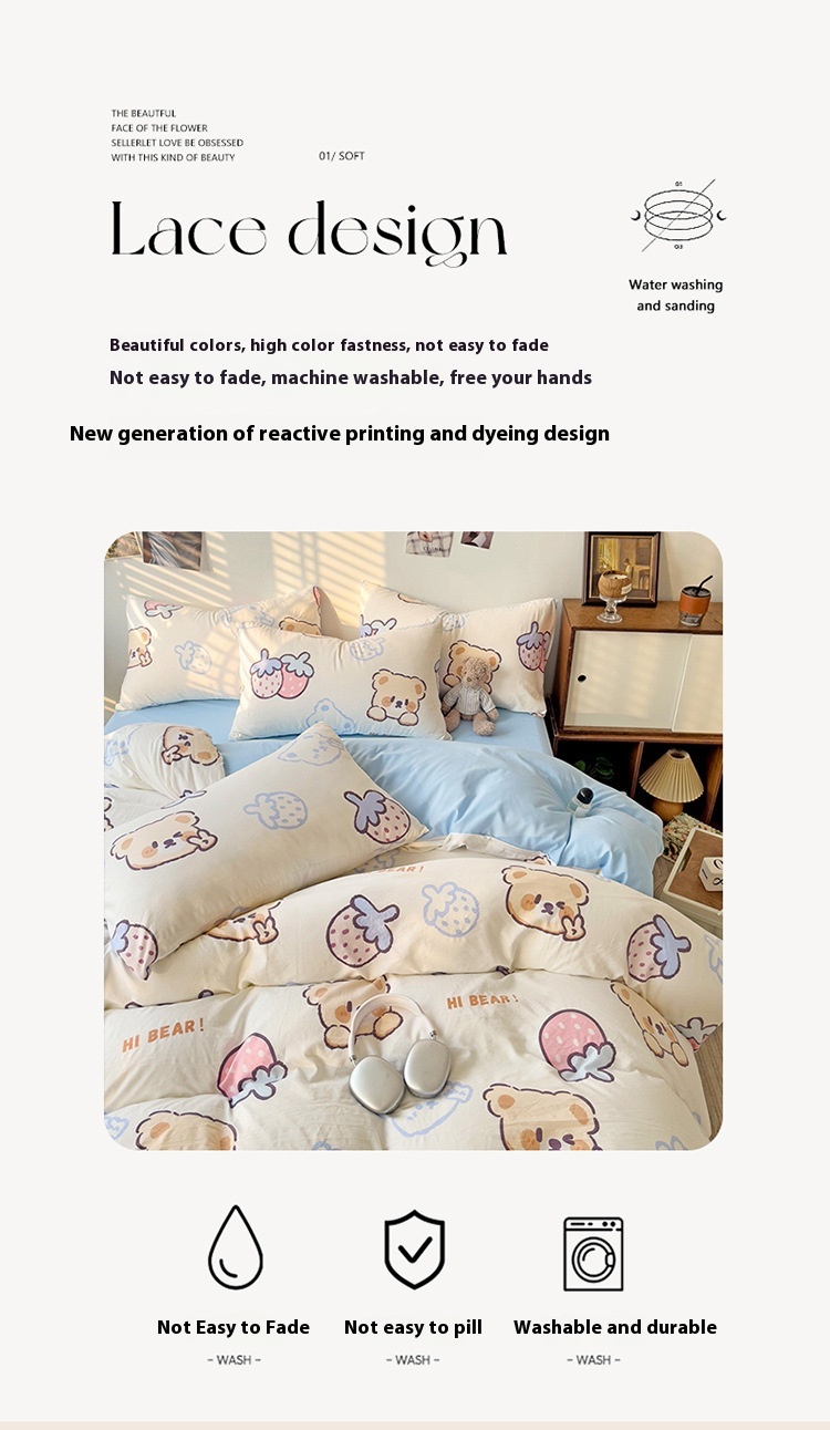 Washed Cotton Four-piece Bedding Set Student Dormitory