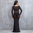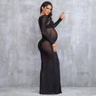 Women's Clothing See-through High Elastic Net Round Neck Slim Fit Pregnant Women Mopping Dress