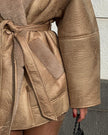 Women's Fashionable Cashmere Leather Fur Collar Composite Belt Coat