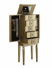 Creatively organize all your jewelry collection with our luxurious jewelry armoire. This armoire offers the ladies freedom to showcase or keep safe their expensive accessories. It features five storage drawers, two side doors with hook and a raised mirror on the top. We ensure each storage drawer is finely velvet outlined. The multi-faceted wooden top rests on wooden fluted legs with overall construction finished in charming white. This will perfectly anchor any room d?cor with enduring look and classic style.