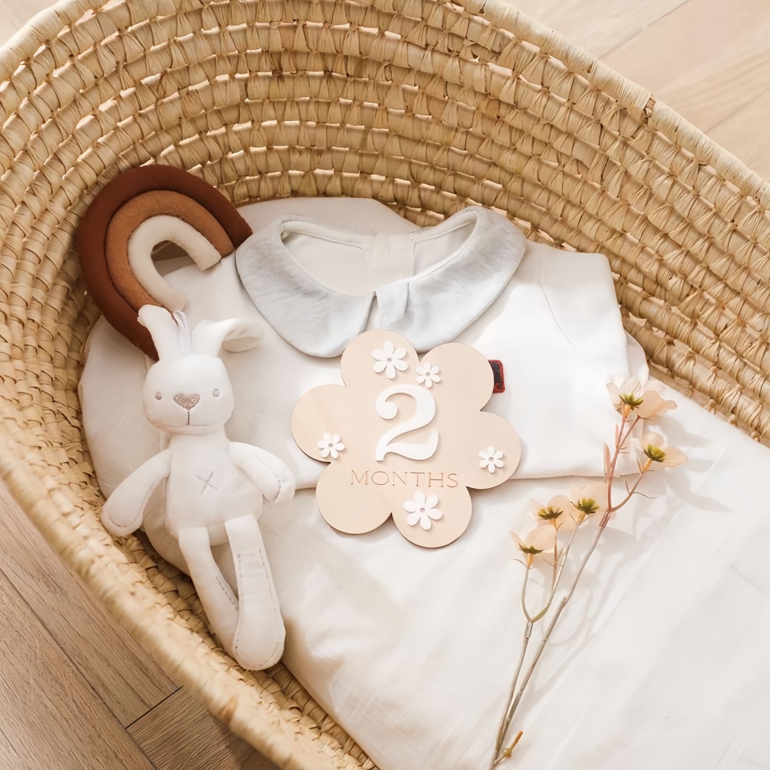 Color: Baby milestone [double-sided decals 16 * 16cm], baby milestone [keychain about 3.5cm], Flowers white small flowers
