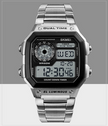 Business steel belt electronic watch double display multi-function sports waterproof watch