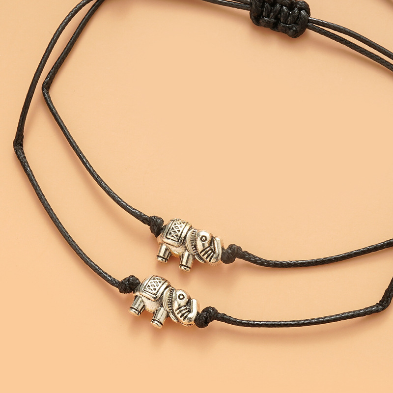 Elephant Bracelet Simple Retro Wax Line Woven Adjustable
