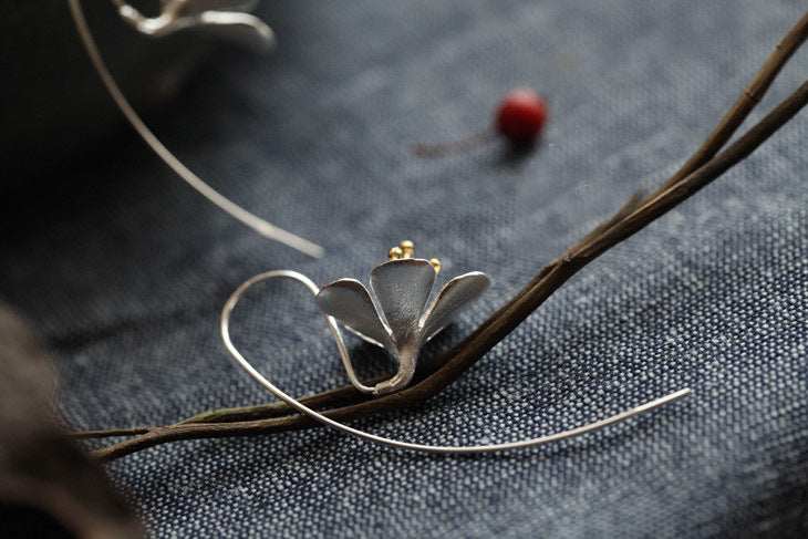 Flower Tassel Long Earrings S925 Sterling Silver Earrings