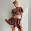 Alpscommerce Ice Silk Pajamas Women's sports dress Short-sleeved Top Pajama Pants Suit