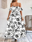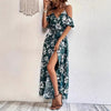Ins Off-Shoulder Split Dress Summer Floral Print Suspender Long Dresses With Belt Design Women's Beach Clothing