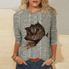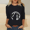 Knitted Long Sleeve Printed Round Neck Women's T-Shirt
