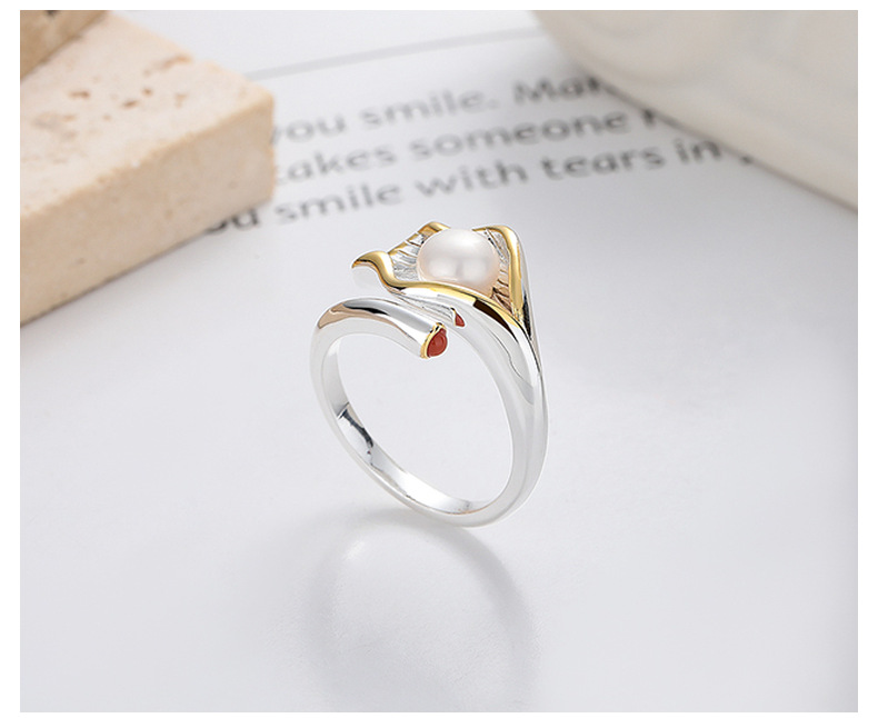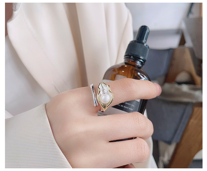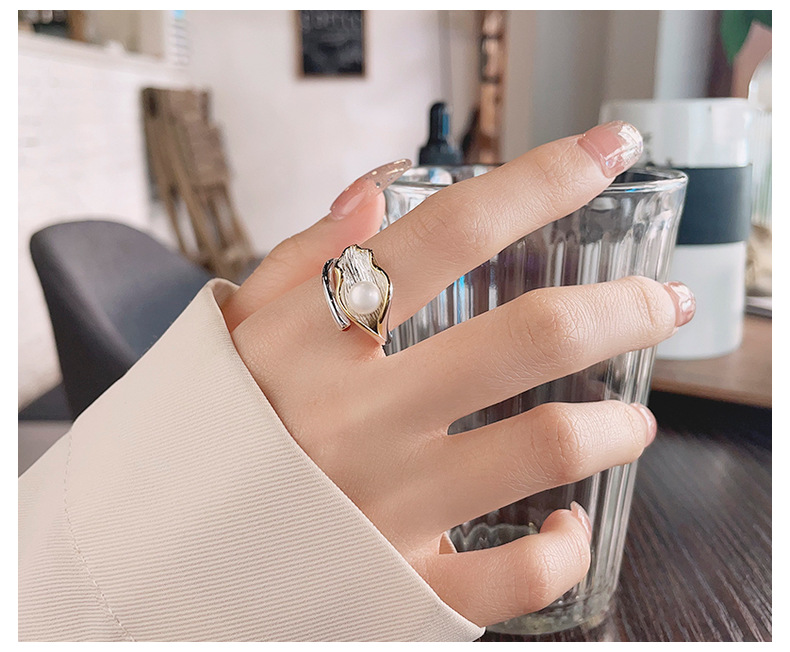 Leaf Color Matching Pearl Light Luxury Exquisite Open Ring