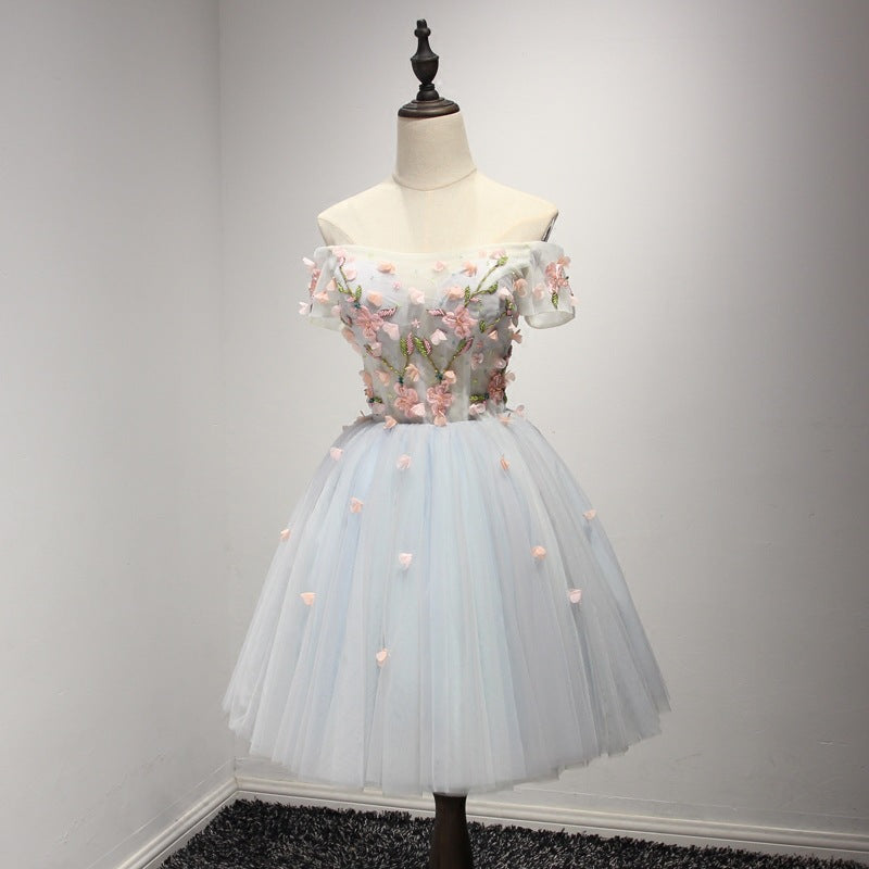 Long paragraph shoulder sister group bridesmaid dress host party wedding dress