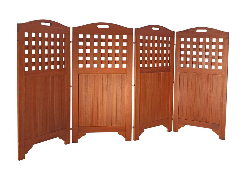 This Malibu Outdoor Patio Wood Privacy Screen helps you hide unsightly yard items, create a private area or separate your yard from other's. Your garbage cans, recyclables, bikes, lawn mowers and A/C condenser units will be out of sight, it's not only make your yard look neater, but require no maintenance and resistant from mold, mildew, fungi, termites, rot and decay. Made from Eucalyptus Hardwood and This will be an elegant and convenient accessories for patio. Apply oil once a year to maintain the color. 1 year warranty against manufacturing defects