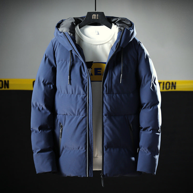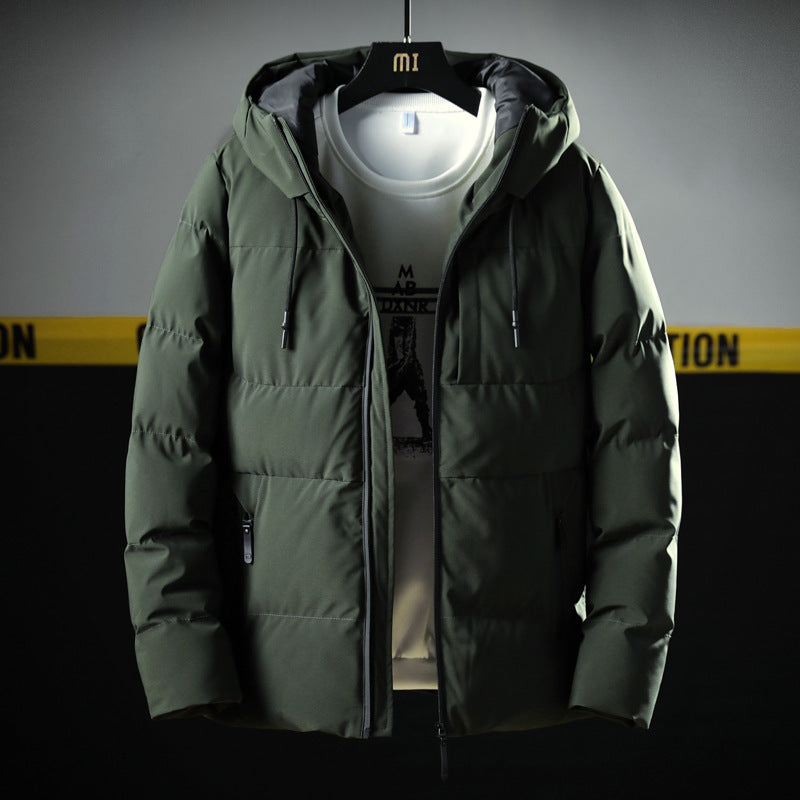 Men's Hooded Thick Solid Color Slim Casual Cotton Coat