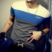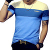 Men's patchwork short sleeve men's casual crew neck T-shirt polo