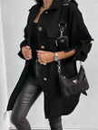 Mid-Length Shirt Jacket With Sleeve-Pull Button Decoration
