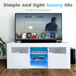 - This home TV stand with LED has amazing design and high quality, which is very suitable for family lovers. Equipped with glass shelves and LED backlight, it is made of chipboard and provides enough storage space for the game console, you can easily and neatly organize the wires or flexible cord units.