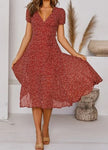 Printed V-Neck Short-Sleeved Lace-Up Dress