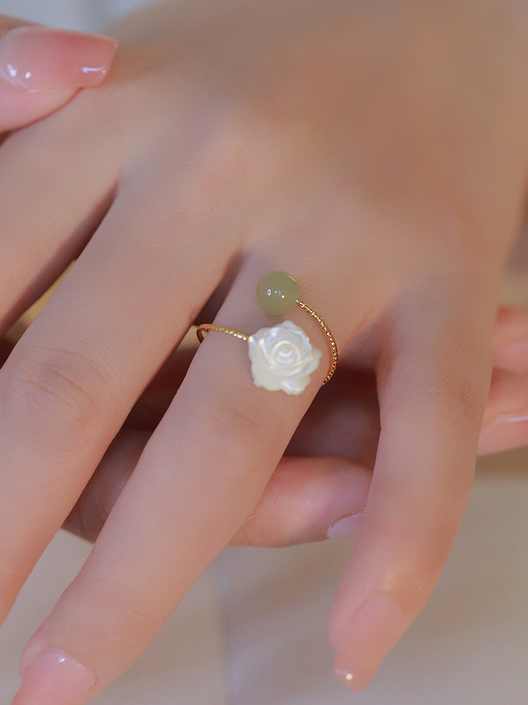 S925 Silver Rose Hotan Jade Ring Girl