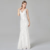 Long Dress Sleeveless V-neck Embroidered Sequin Slim Mermaid Dress