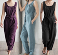 Sleeveless vest elegant high waist belt cotton casual jumpsuit trousers