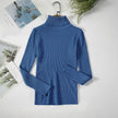 Solid Color Pit Strip Knit Pullover Turtleneck Sweater
