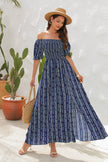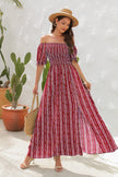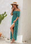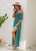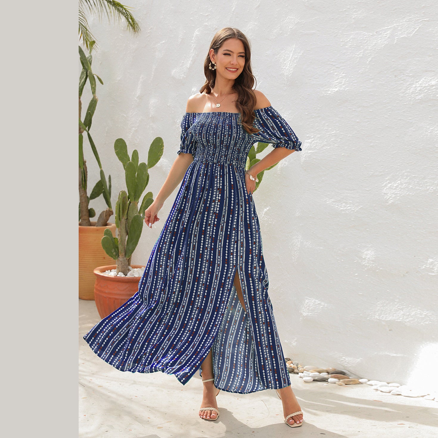 Spring And Summer New Vertical Stripes Floral Print Slit Waist Dress