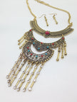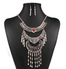 Vintage Turquoise Diamond Female Necklace Earrings Set National Diamonds Fashion Jewelry