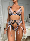 Women's Fashion Ruffles Embroidered Rabbit Hollow Underwear Three-piece Set