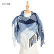 Yarn Stripe Grid Polyester Long Fringed Bristles Square Scarf Women Men's Bib Shawl