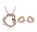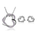 Yiwu Fashion Jewelry Factory Jewelry Customized Double Diamond Heart Necklace Earring Set